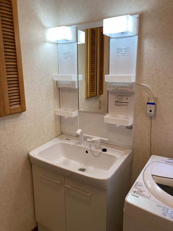 劣化や黄ばみが気になるということで、 洗面化粧台交換工事を行いました。 LED照明で見やすく、きれいなホワイト色で 素敵な洗面台になりました! 奥行きもコンパクトなので、脱衣所も広々感じるようになりました! 【商品】LIXIL:オフト(幅:75cm,扉色:ホワイト)