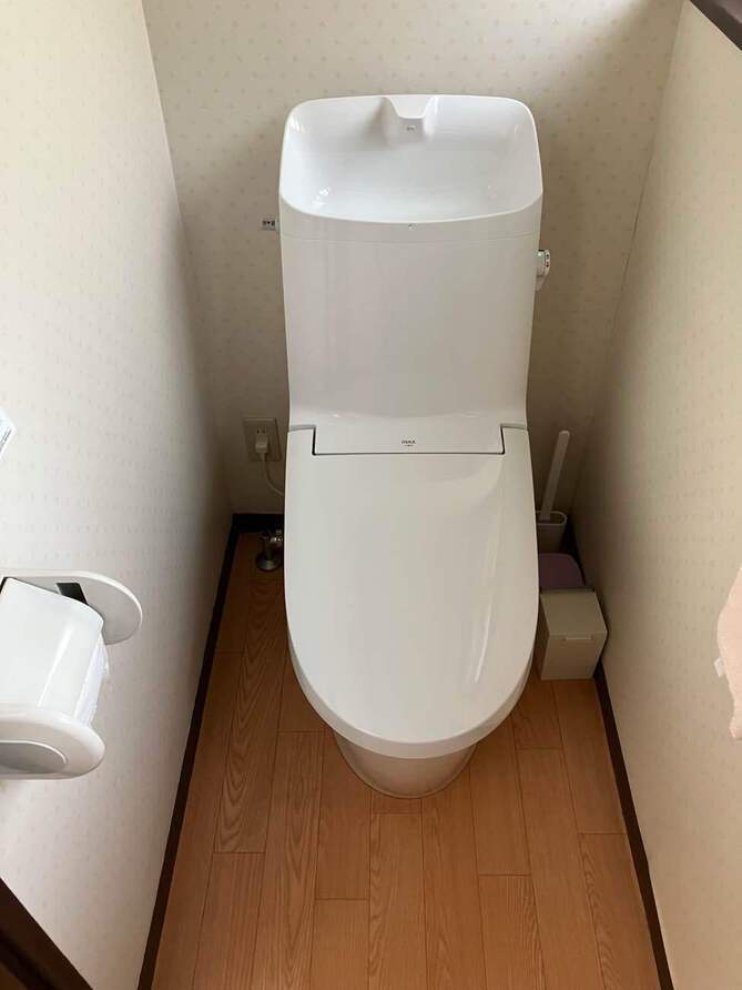 経年劣化による故障が見られた為、交換工事を行いました。 タンクと便器が一体型で、見た目すっきりとした形になりました! 手洗い部分もシャワーで水が吐出されるので、 水ハネの心配もなしです! 【商品】LIXIL:プライムオリジナル