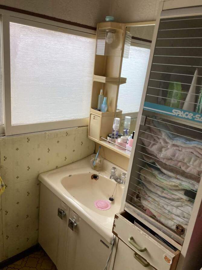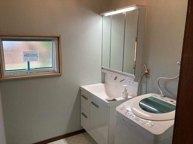劣化が目立っていた洗面台をリフォームしました。 鏡の裏にも収納スペースがあり、生活用品をすっきり収納できるようになりました! 白を基調としたデザインで空間全体が明るくなり、 スペースに余裕ができたことで洗濯機も設置でき、ゆとりのある洗面所へと変わりました! 【商品】LIXIL:プライムオリジナル(幅:75cm,扉色:グロスホワイト)