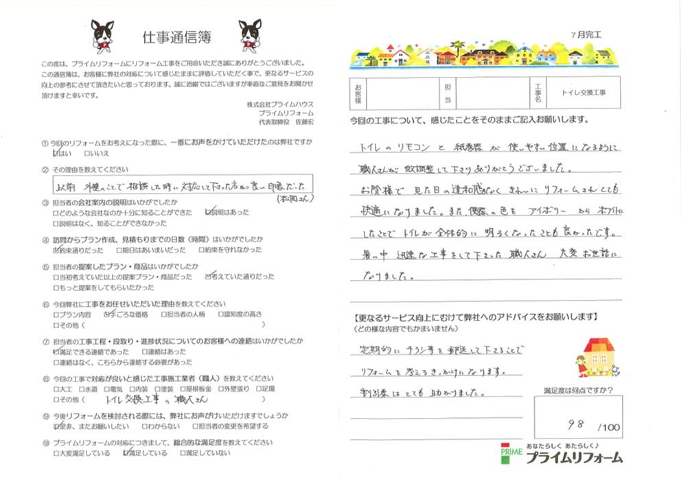 トイレリフォーム(秋田市・S様邸)98/100 点