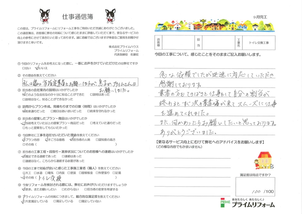 トイレリフォーム(秋田市・S様邸)100/100 点
